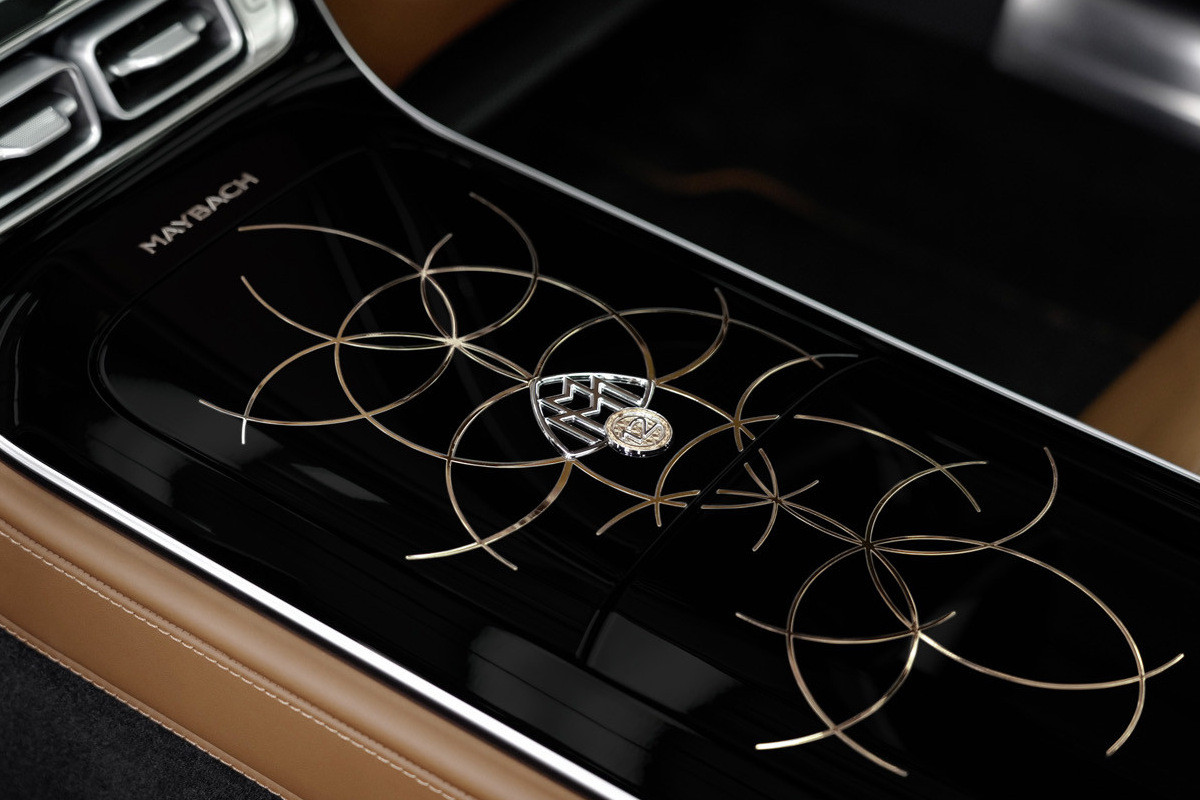 Хромированная эмблема Maybach на задней стойке дополнена золотой «медалью» с числом 12: это напоминание о логотипе классической модели Maybach Zeppelin DS 8. Для изготовления детали использовано 24-каратное золото, дополненное бриллиантовой гравировкой и V-образным узором, который не даст забыть о схеме расположения цилиндров двигателя.